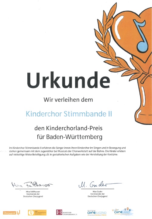 Kinderchorlandpreis 2023 für das Bundesland Baden-Württemberg!